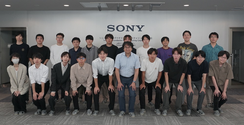 本研究科 電気電子工学コースでは、令和7年9月26日(金)、ソニーセミコンダクタマニュファクチャリング株式会社 山形テクノロジーセンター(山形TEC)にて、工場見学会を実施しました。電気電子工学コースの3年次生から大学院生まで、学年の枠を超えた希望者20名が参加し、河村希典教授が引率しました。山形TECは、スマートフォンカメラ向け半導体の主要な生産拠点であり、最先端の製造現場を学ぶ貴重な機会となりました。
