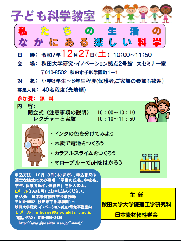 子ども科学教室「私たちの生活のなかにある楽しい科学」 のご案内