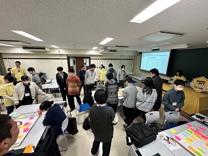 2日目には応用的な実習を終えた後、参加者をチームに分け、ハッカソン本番に向けたアイデアソンを実施いたしました。参加者は、「IoTで描くミライあきたネクスト」という開催テーマのもと、地域課題の解決に繋がるアイデアを創出するために活発な意見交換を行い、制作作品のユニークなコンセプトと強固なチームビルディングを完了しました。